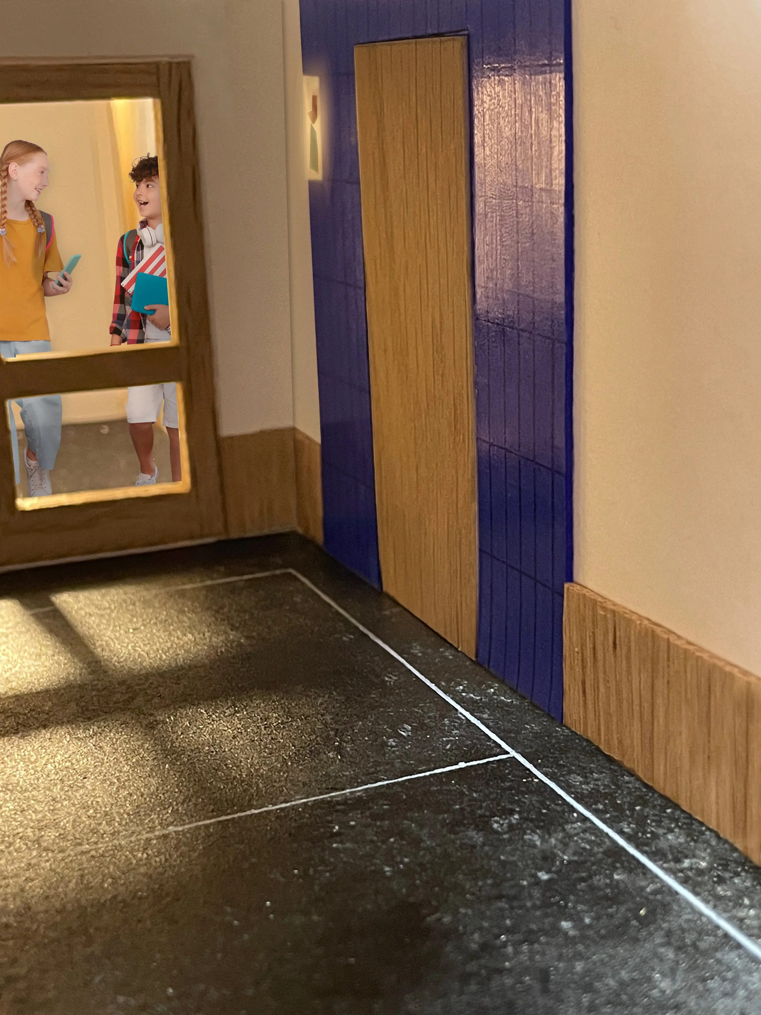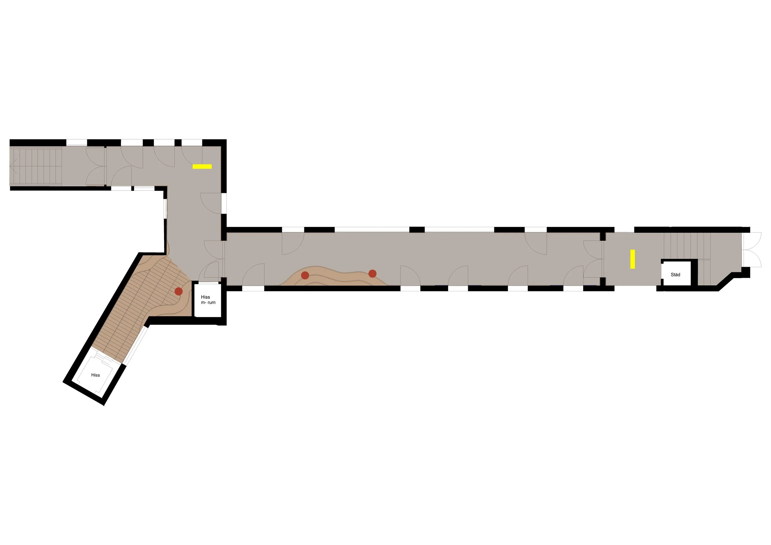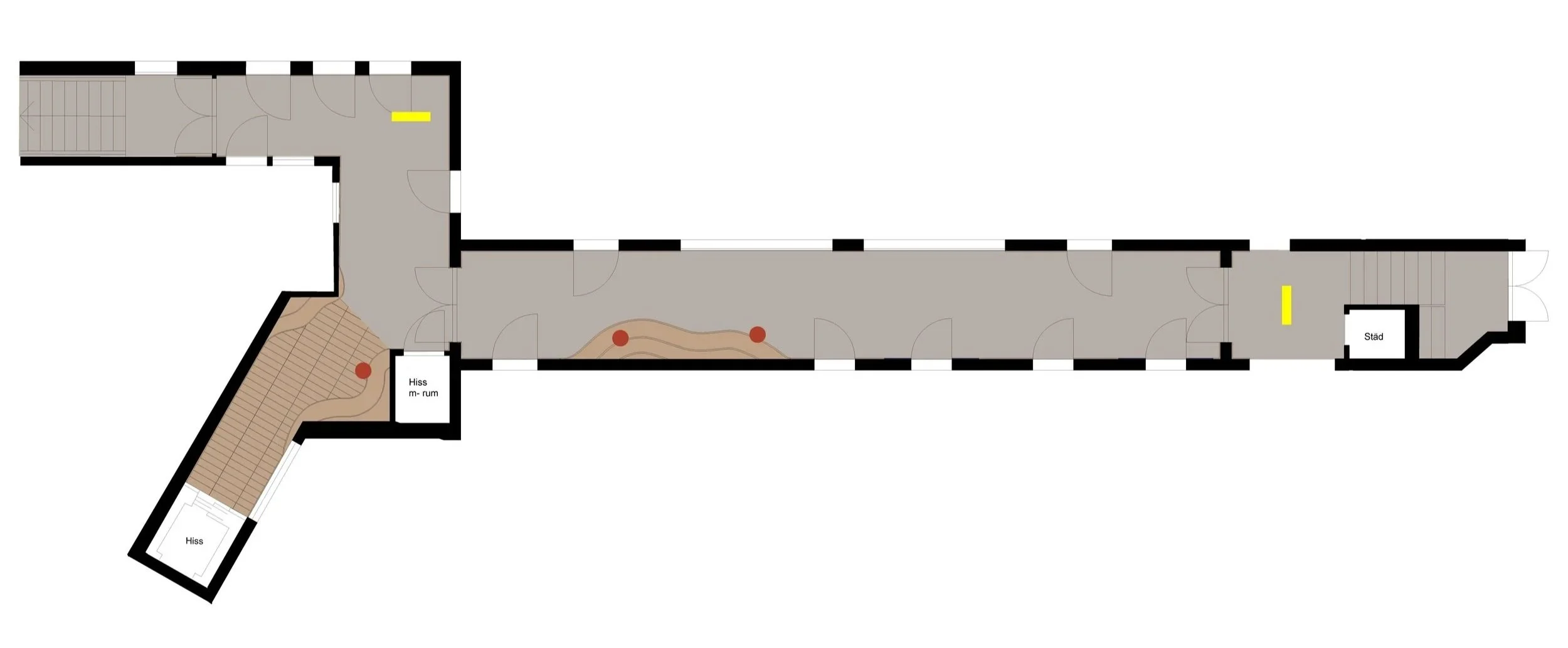 Inredningsförslag för källarkorridoren i Hägerstensåsens medborgarhus.