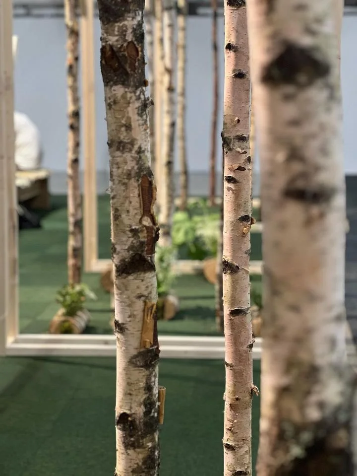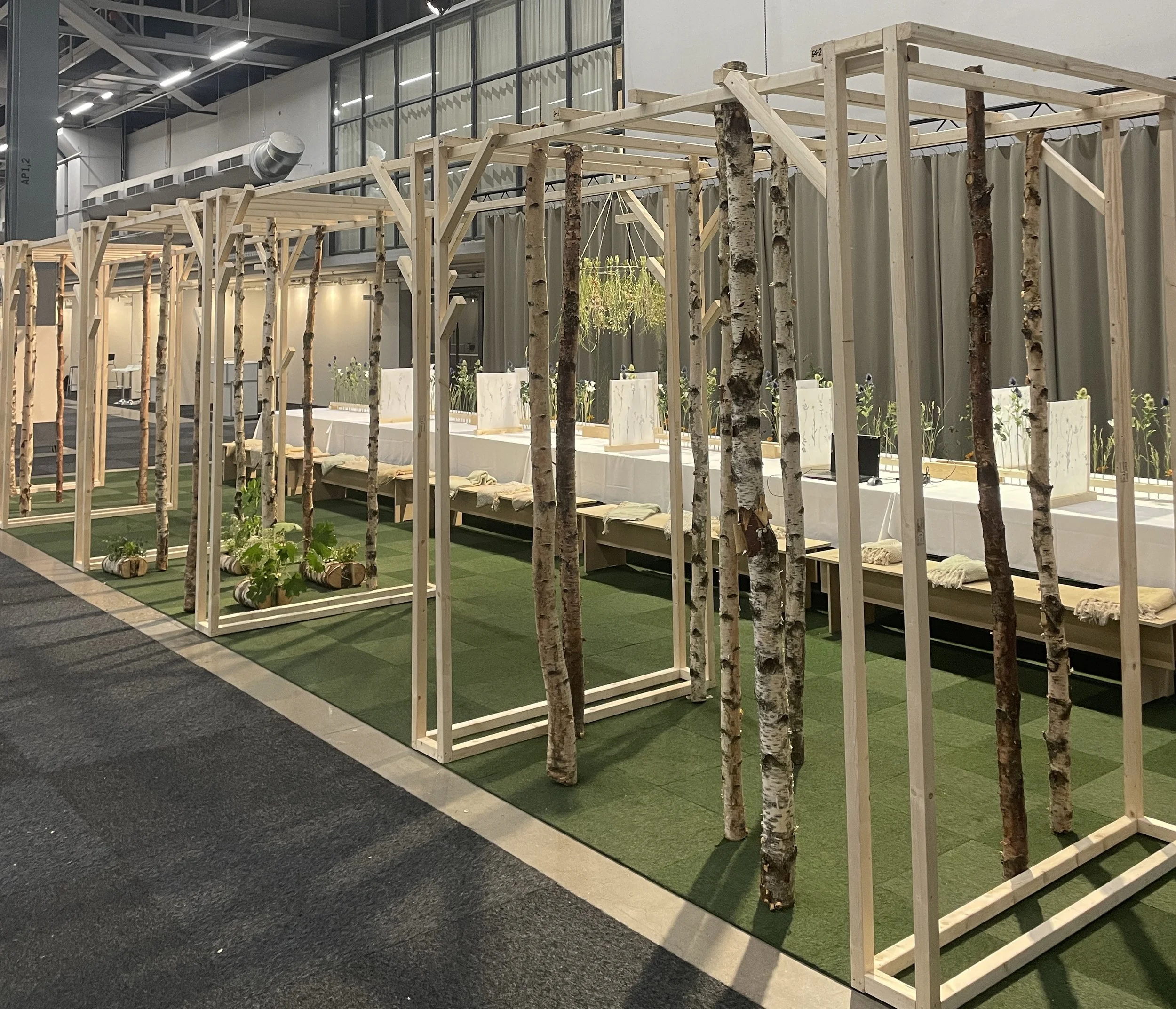 Under midsommarveckan 2024 hölls IUFRO World Congress, världens största skogs-forskningsmässa, på stockholmsmässan och under några dagar samlades forskare och experter från hela världen. Här föds behovet av en avskild arbetsplats för spontana stunder av fokus och produktivitet. Som ett sätt för internationella gäster att få känna på den svenska midsommartraditionen blev midsommar inspirationskällan för denna plats.